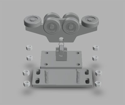 • Laufwagen mit innenliegenden Rollen, das Tor benötigt keine Bodenschiene im Fahrbereich.