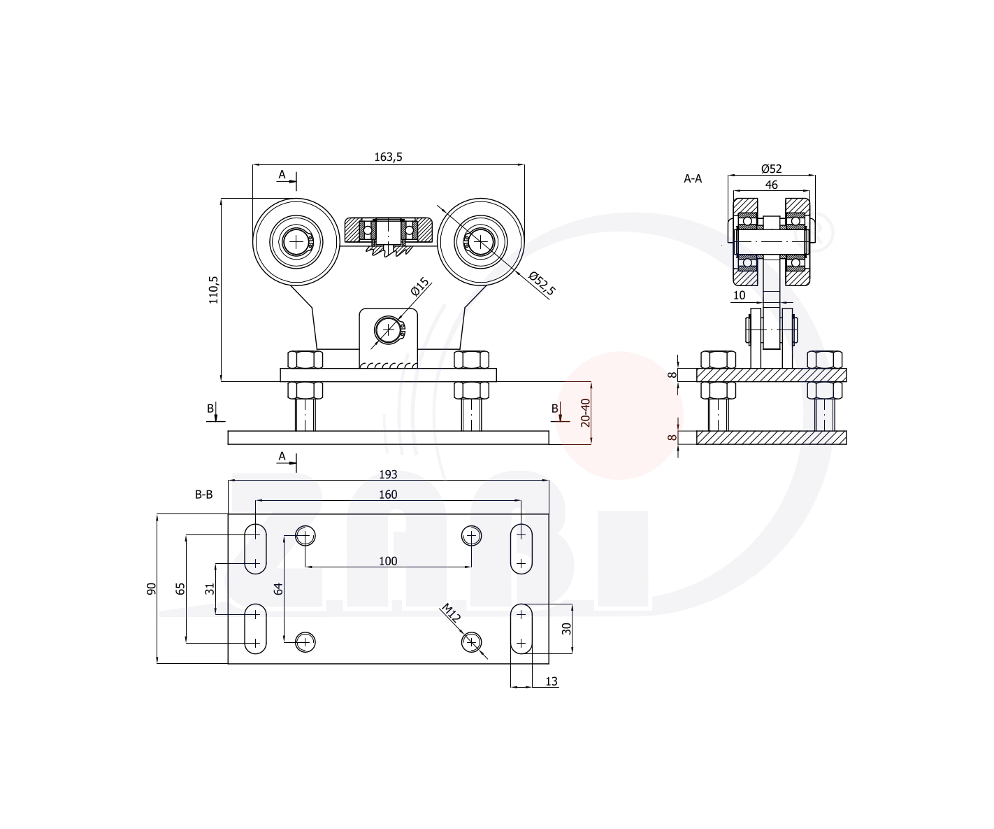Laufwagen und Zubehör für Schiebetore und Selbsttragendes, Rollwagen für Tore, Für profile 60x60 dicke 3,5mm mit dem Symbol WR-5T-60