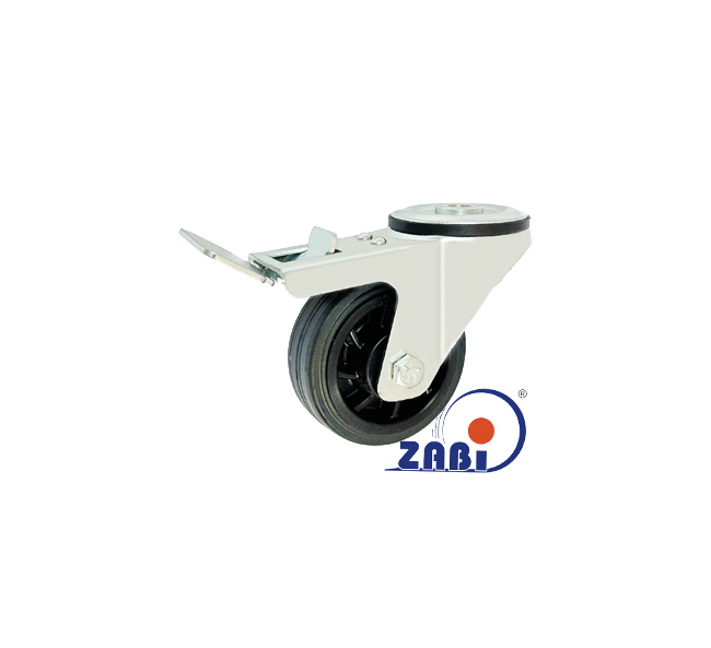 Räder und Rollen, Kunststoffgummiräder, Lenkrollen mit Rückenloch und Bremse mit dem Symbol 8TH/10