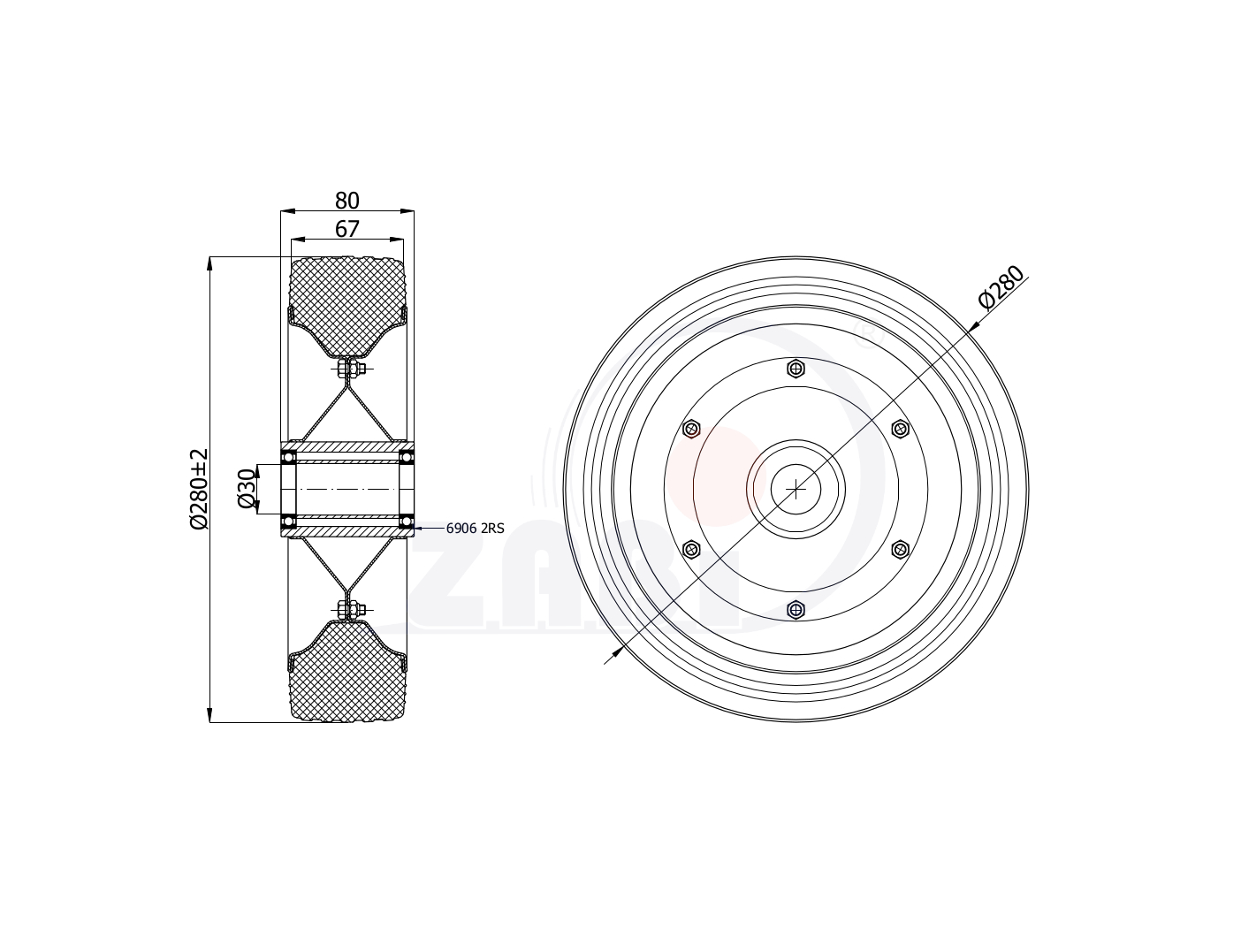 Räder und Rollen, Metallgummiräder, Räder mit dem Symbol 280L/30