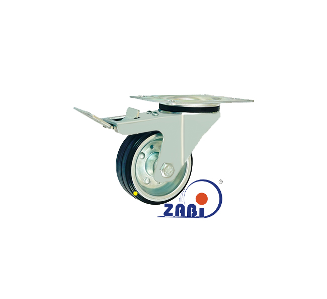 Antistatische Räder und Rollen mit Gummireifen, Antistatische Räder und Rollen mit Gummireifen, Lenkrollen mit Platte und Bremse mit dem Symbol 6H-AS