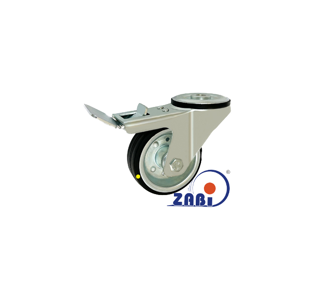 Antistatische Räder und Rollen mit Gummireifen, Antistatische Räder und Rollen mit Gummireifen, Lenkrollen mit Rückenloch und Bremse mit dem Symbol 8H/10-AS