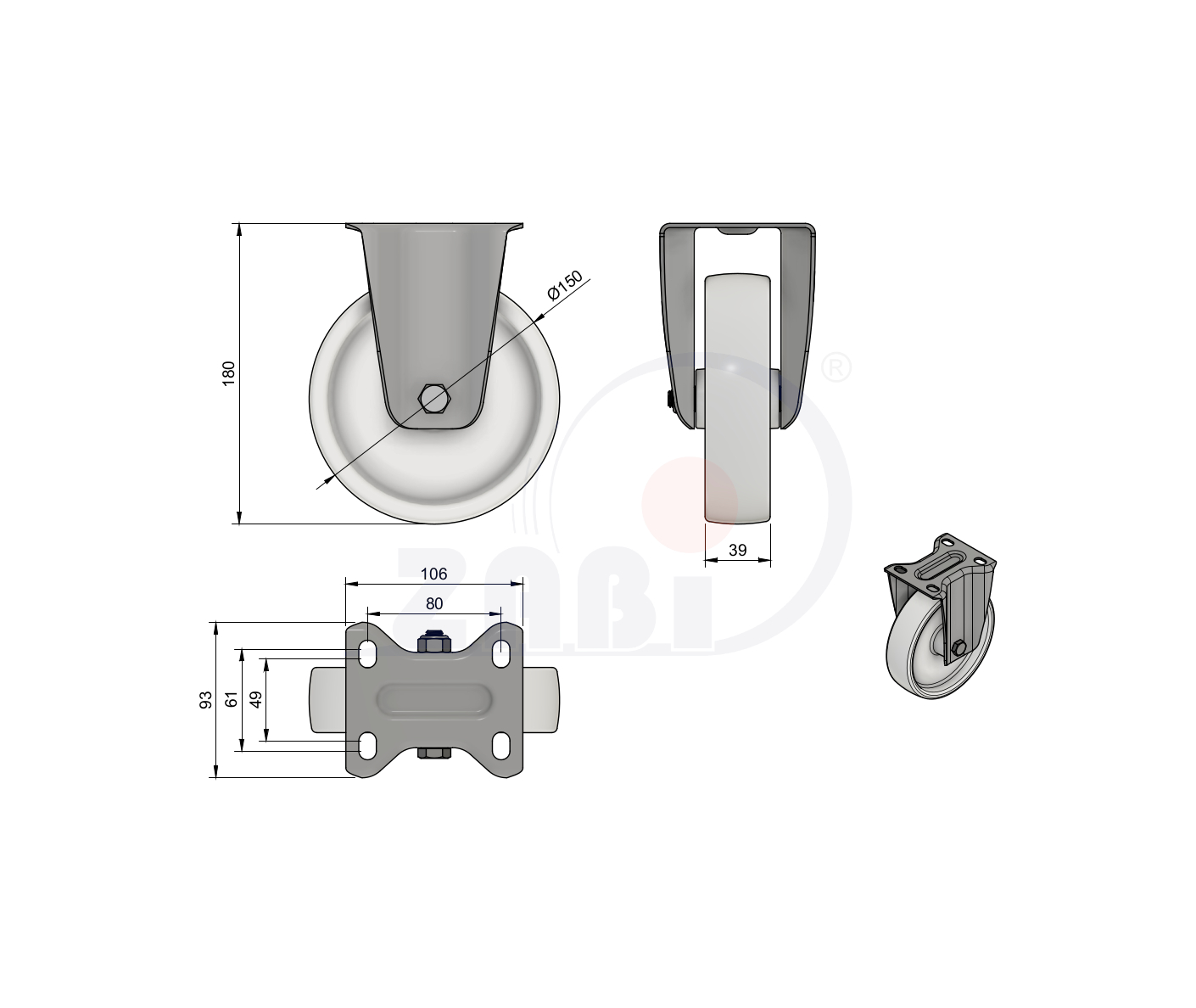 Räder mit Hitzebeständig, Räder mit Hitzebeständig bis 150°C, Bockrollen mit dem Symbol 73MBE9