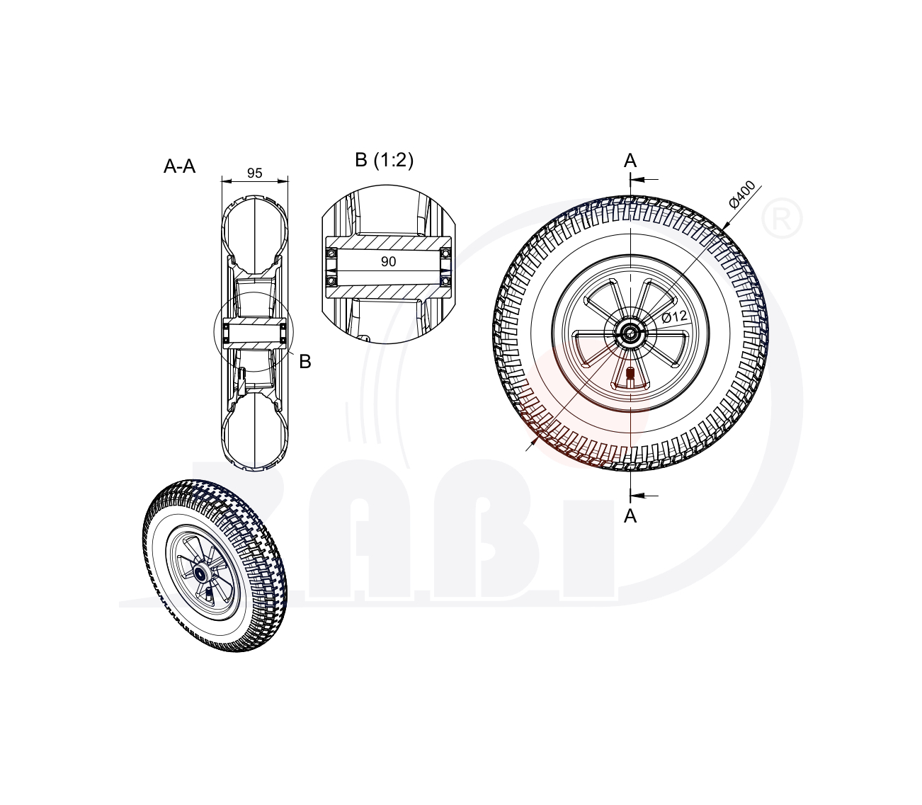 Räder mit Luftreifen, Räder mit Luftreifen, Räder mit dem Symbol 400X2TL/12
