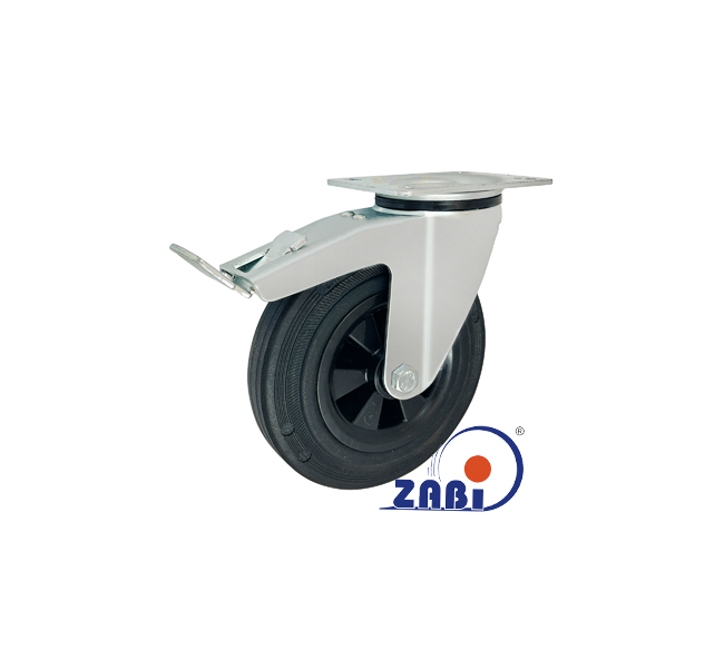 Räder und Rollen, Kunststoffgummiräder, Lenkrollen mit Platte und Bremse mit dem Symbol 65TW9H