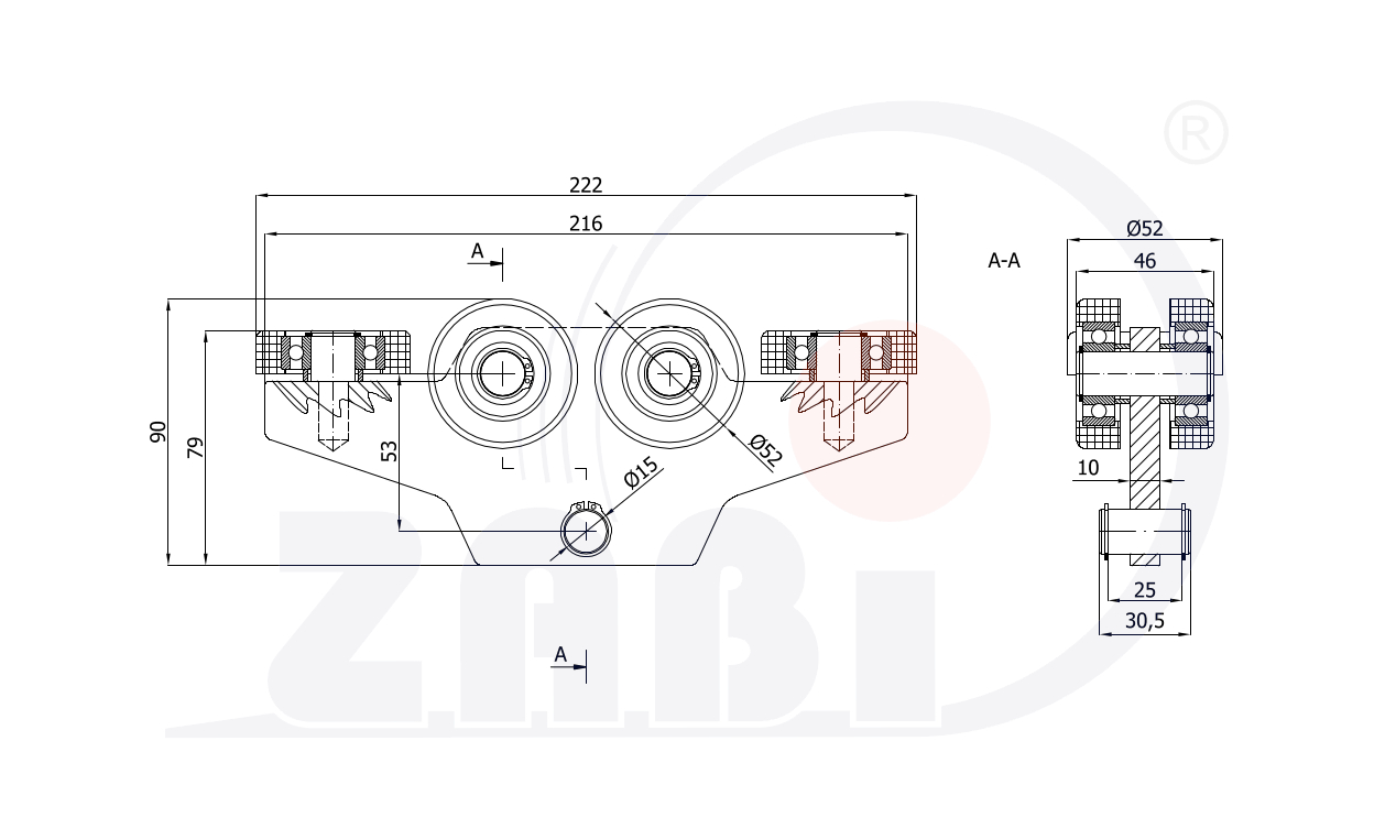 Laufwagen und Zubehör für Schiebetore und Selbsttragendes, Rollwagen für Tore, Für profile 60x60 dicke 3,5mm mit dem Symbol WG-6T-60
