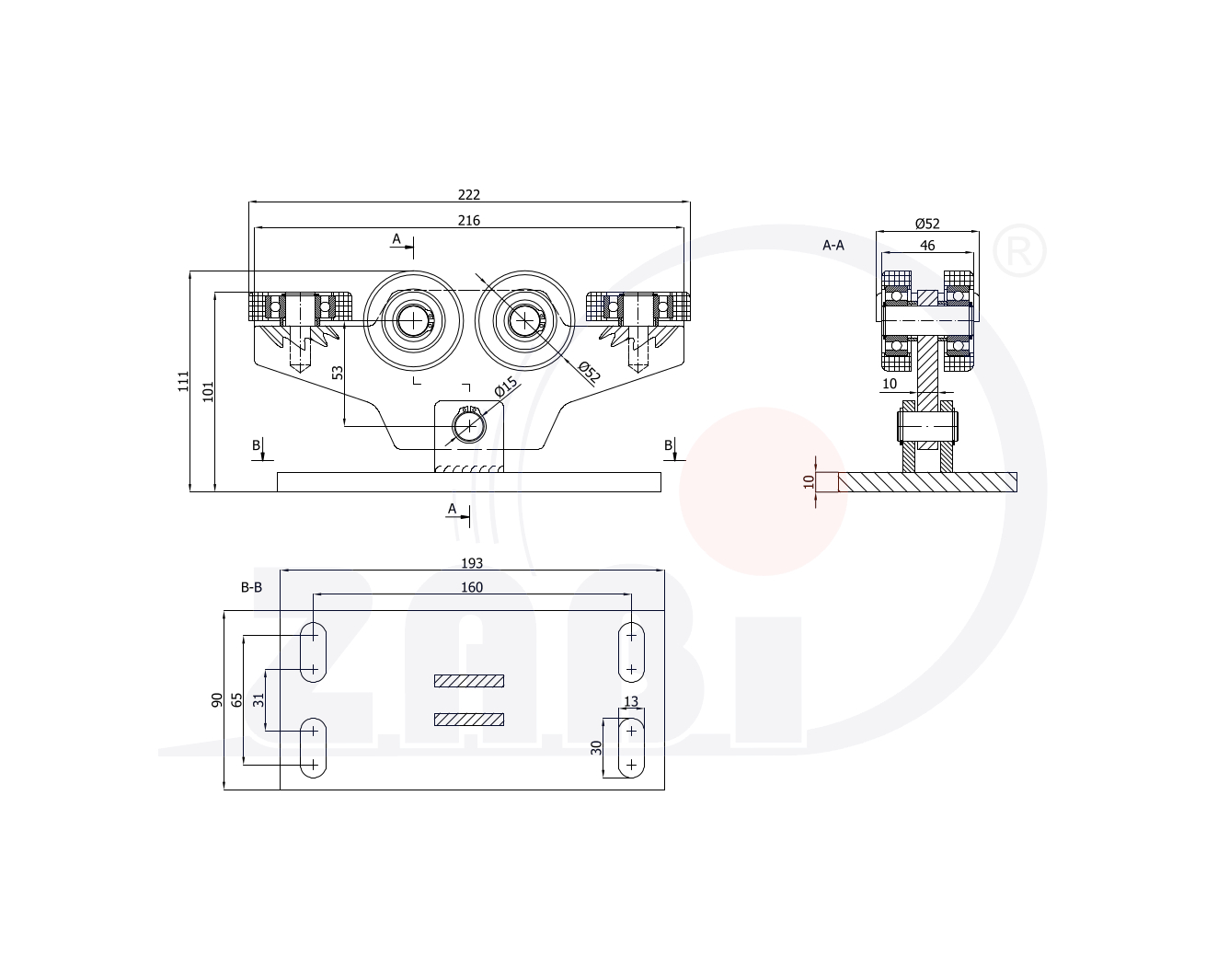 Laufwagen und Zubehör für Schiebetore und Selbsttragendes, Rollwagen für Tore, Für profile 60x60 dicke 3,5mm mit dem Symbol W-6MM-60