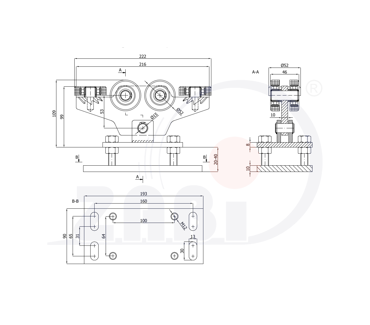 Laufwagen und Zubehör für Schiebetore und Selbsttragendes, Rollwagen für Tore, Für profile 60x60 dicke 3,5mm mit dem Symbol WR-6T-60