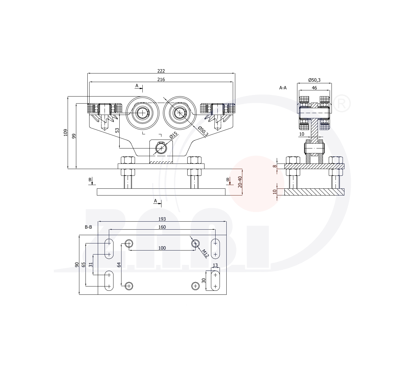 Laufwagen und Zubehör für Schiebetore und Selbsttragendes, Rollwagen für Tore, Für profile 60x60 dicke 4mm mit dem Symbol WR-6MM-60/4