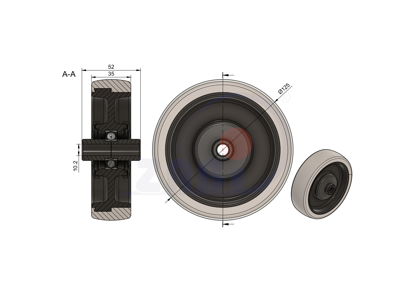 Durchmesser des Rads [mm] : 125