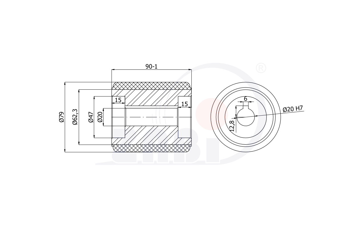 , Kunststoff- und Metallrollen, Antriebsrollen und räder mit dem Symbol RAG-K-80-90