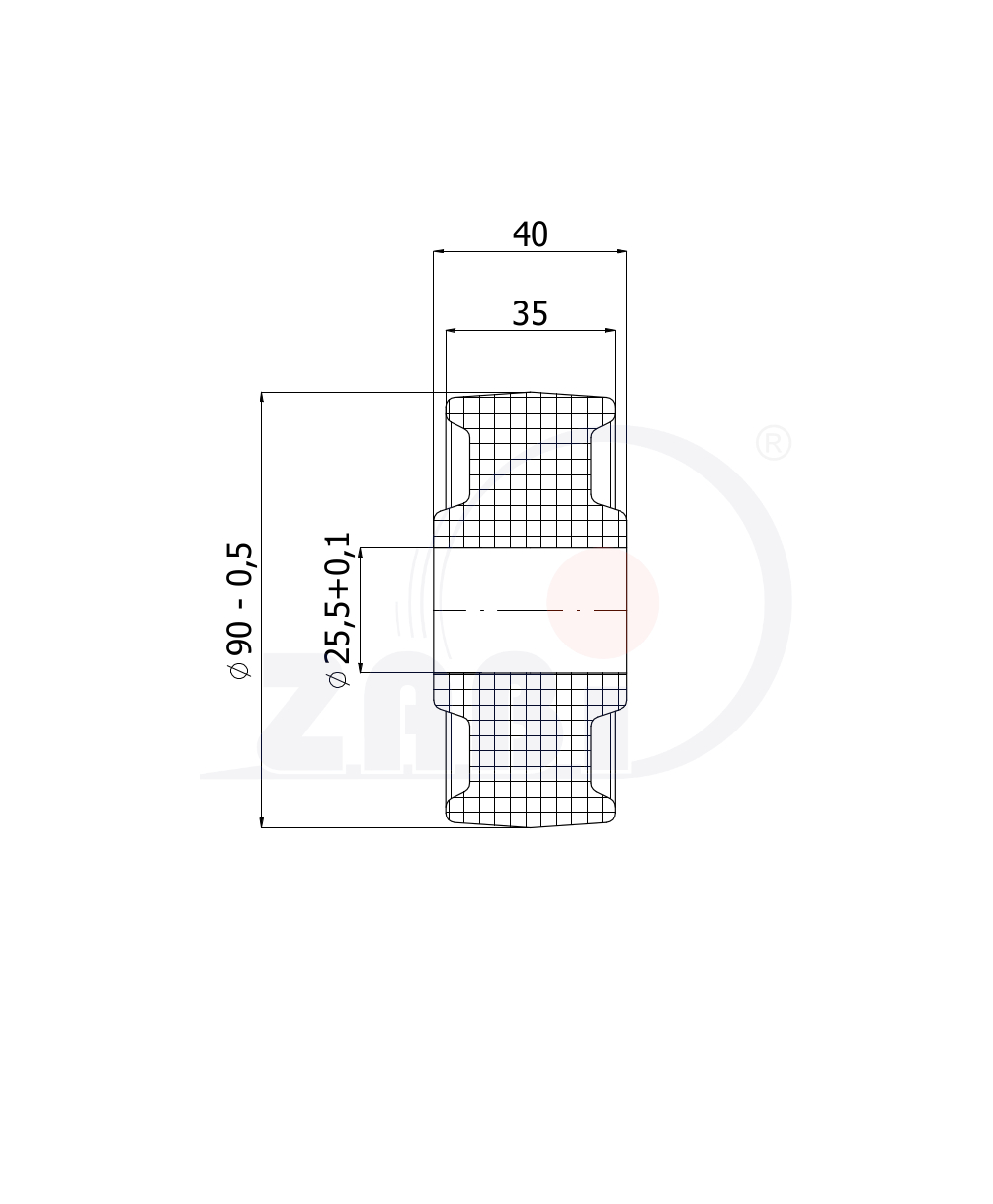 Kunststoff- und Metallrollen, Kunststoff-Polyamid-Rollen, Einfache Kunststoff-Rollen ohne Kugellager mit dem Symbol RB-90-40-35/25POM