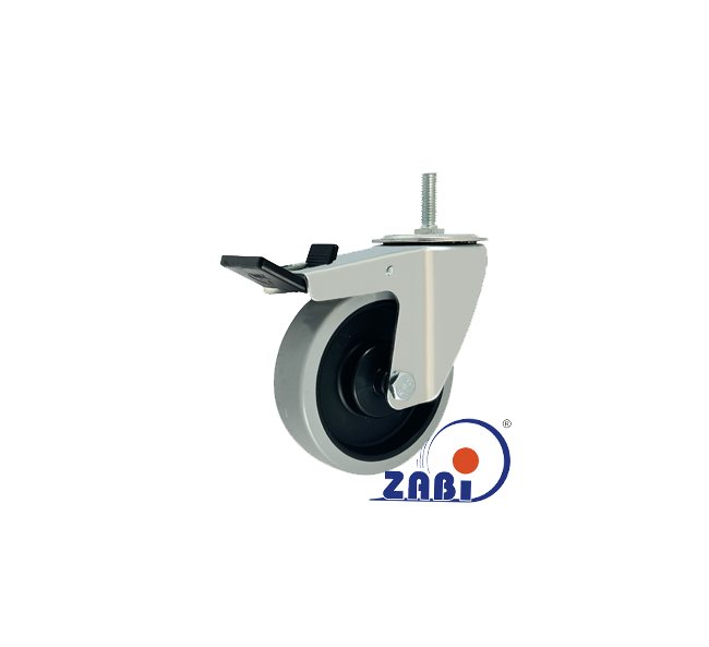 Räder und Rollen, Polypropylen-Polyurethanräder, Lenkrollen mit Zapfen und Bremse mit dem Symbol 26MPPULH*M12