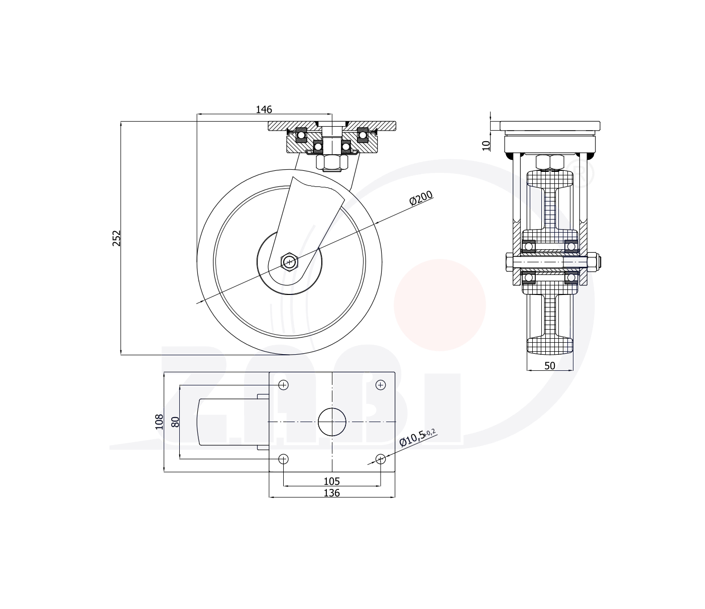 Polyamidräder, Polyamidräder, Lenkrollen mit Platte mit dem Symbol 62BND