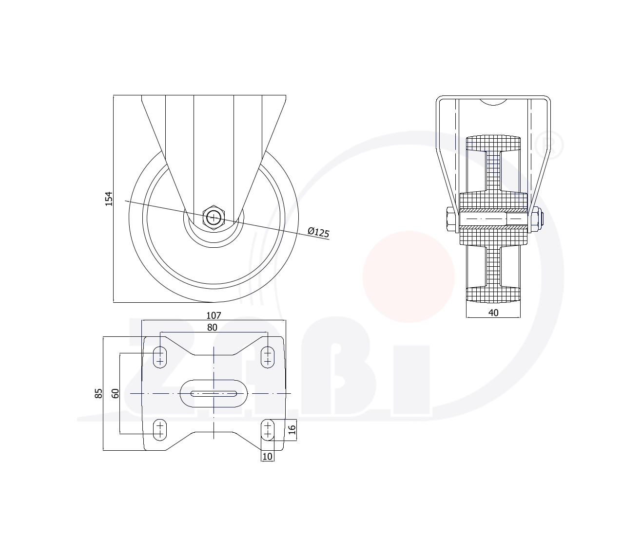 Durchmesser des Rads [mm] : 125
