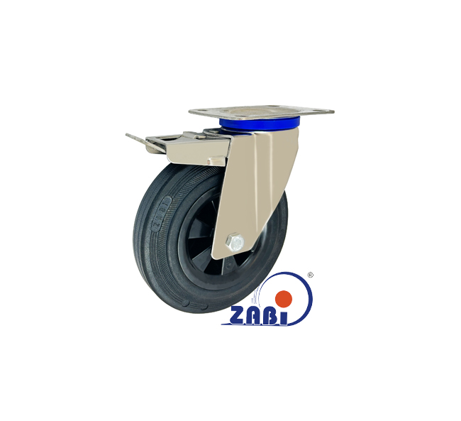 Räder und Rollen, Räder im Gehäuse aus rostfreiem Stahl, Lenkrollen mit Platte und Bremse mit dem Symbol 65TX9H