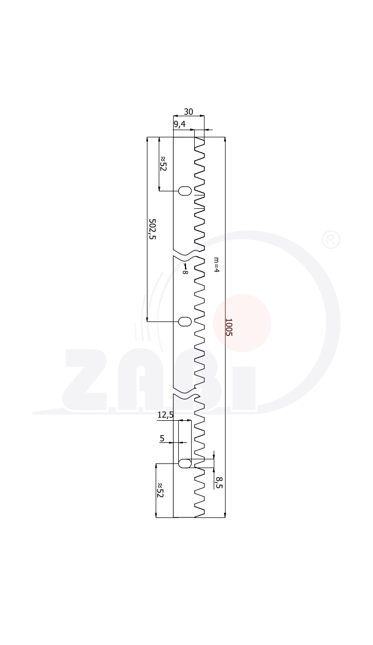 LZM/1000 Zobacz produkt 0 1.60 listwa zębata metalowa długość 1000mm - moduł 4, zestaw montażowy